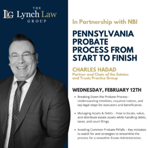 Join Attorney Charles Hadad on February 12, 2025 for a national CLE with NBI, where he will provide a comprehensive overview of the Pennsylvania probate process from start to finish.